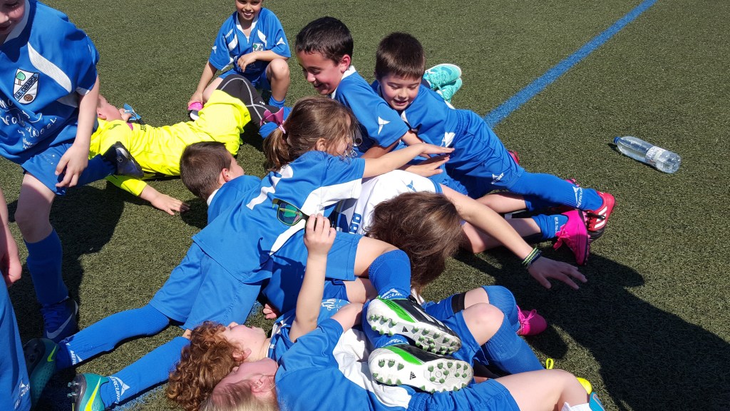 Desde el principio, el Equipo se mostró unido como una piña. Raquel, con su habilidad innata para conectar con los niños, se ganó rápidamente su respeto y admiración. Los entrenamientos y partidos se convirtieron en una fuente de alegría y diversión. Además, los abrazos se convirtieron en una parte vital del equipo. Era habitual al final de cada partido, independientemente del resultado, ver a todos los críos en un abrazo grupal tirando-se por el suelo.