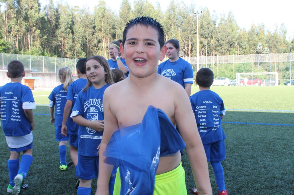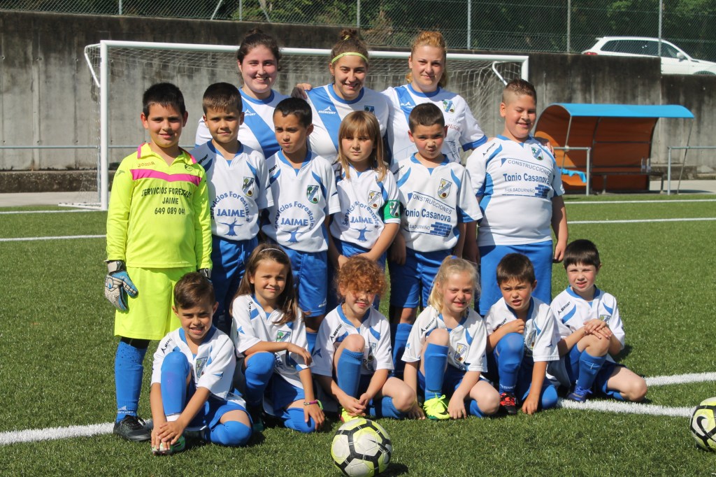 La pasión por el fútbol no tiene edad, ni género, ni barreras. Y eso es lo que demostraron un grupo de niños y niñas que se juntaron para formar el primer equipo prebenjamín en la historia de nuestro club. Con mucho esfuerzo, dedicación y amor por el balón, Anxo, Miguel, Mariana, Izan, Marco, Mateo, Iván, Lara, Carla, Hugo, Mara y Andrés se convirtieron en una familia dentro y fuera del terreno de juego. Y no fueron solo ellos, sino también sus líderes, Raquel, Iría y Cris, quienes con su cariño, paciencia y sabiduría, guiaron a estos pequeños guerreros en sus primeros pasos en el mundo del fútbol. Y el resultado de su trabajo en equipo fue una hazaña increíble: ganar el título de Liga en su categoría. Pero más allá de los trofeos y las victorias, lo que realmente quedó en el corazón de todos fue la amistad, el respeto, la diversión y los abrazos que compartieron en cada entrenamiento y partido.