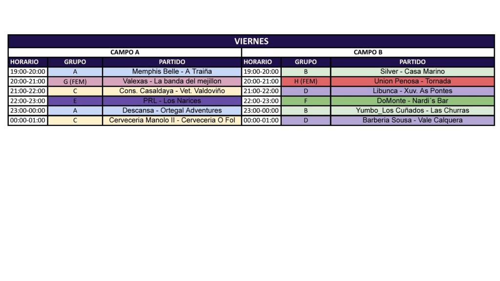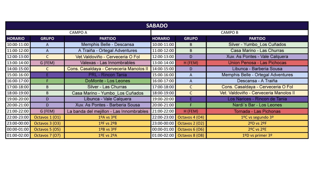 A continuación, detallamos el cuadro de partidos para cada día del torneo: