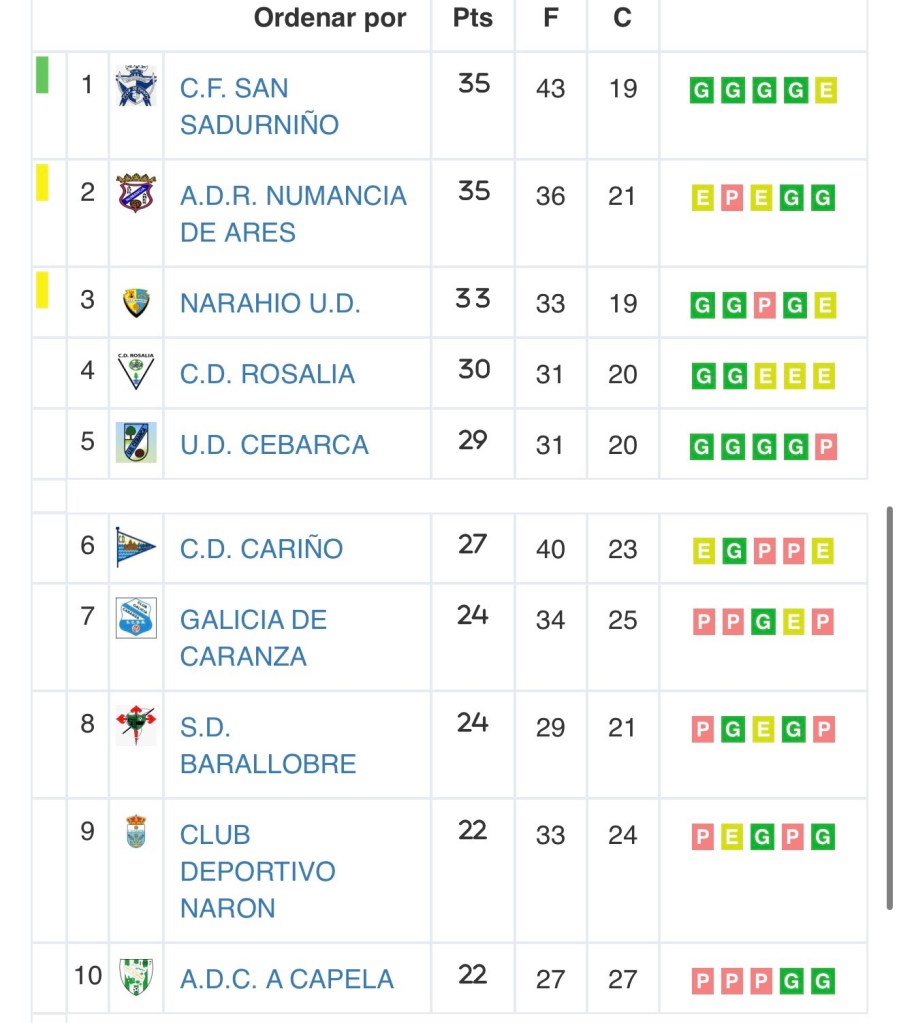 Tras esta xornada, a U.D. Cebarca mantense nas posicións altas da táboa, ocupando a quinta praza con 29 puntos, plenamente metida na loita.